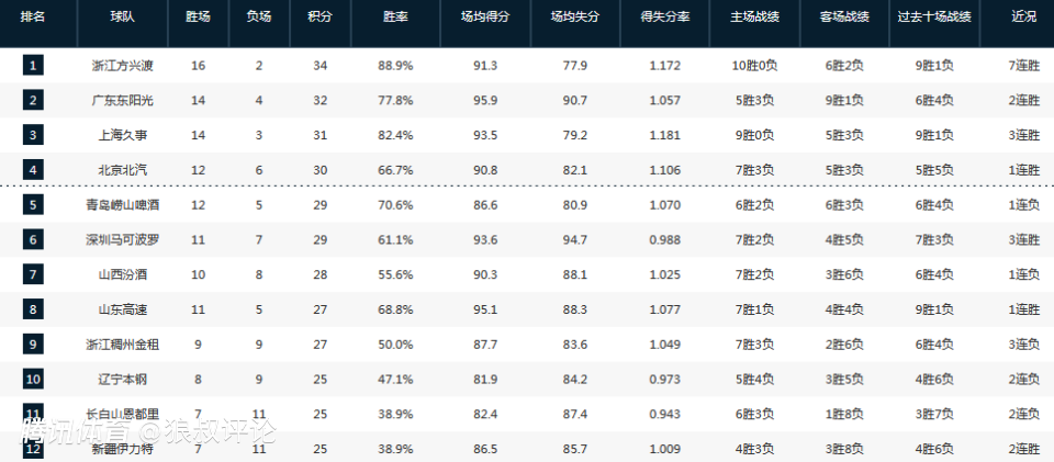 对于积分榜的变化如下,北京捍卫主场后,重返前四名,深圳赢下卡位大战,拿到一波3连胜,稳居积分榜前八名。新疆力克四川同样重返季后赛区域,江苏终结了天津的4连胜。