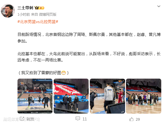 但本场比赛,赵睿,曾凡博参与踩场训练,是否意味着今晚登场,相信是球迷关注的焦点,而北控方面,沈梓捷是否出战,同样是决定北控综合实力的关键内线球员。