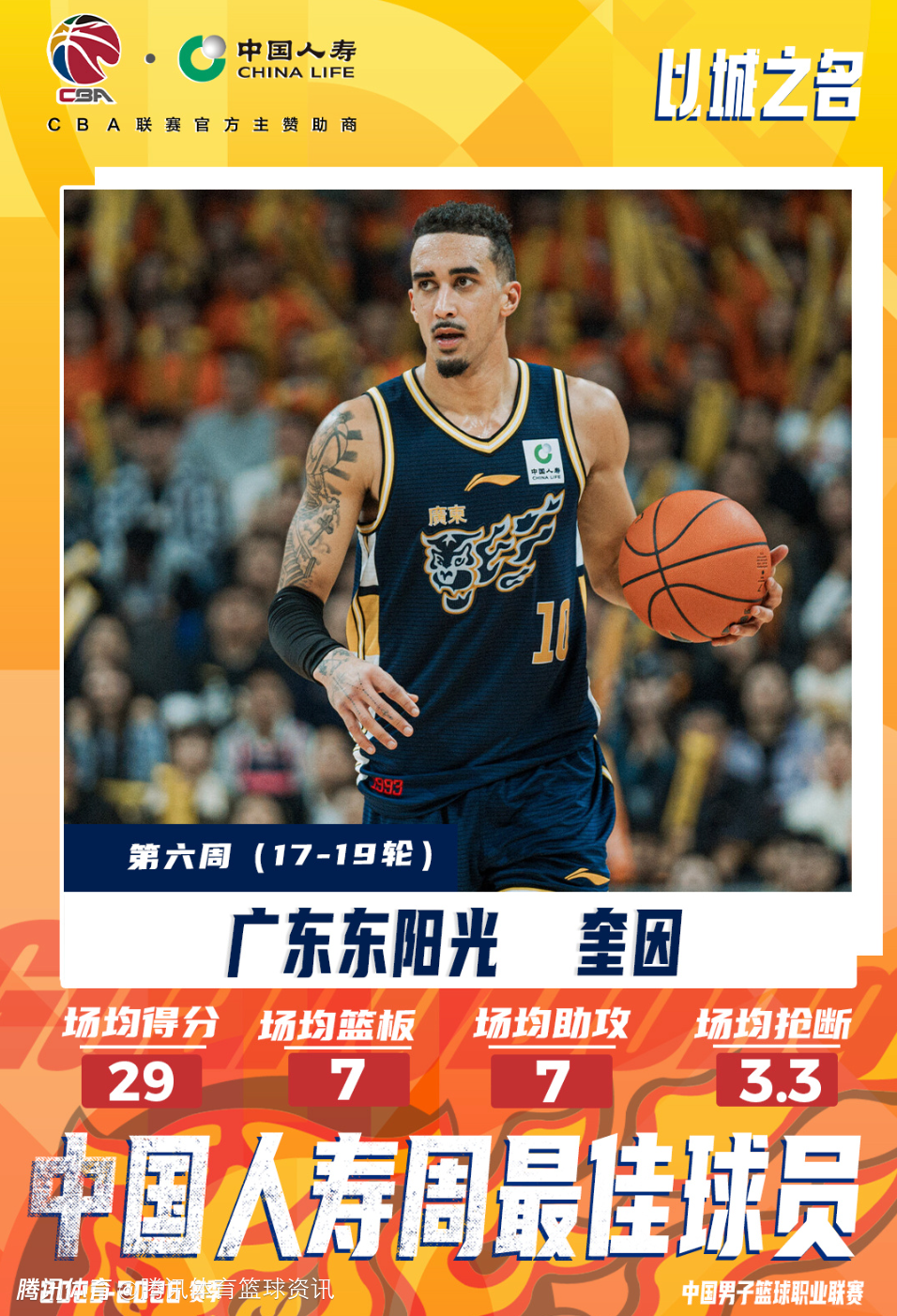 【奎因当选2025-2026赛季CBA联赛常规赛第六周中国人寿周最佳球员】