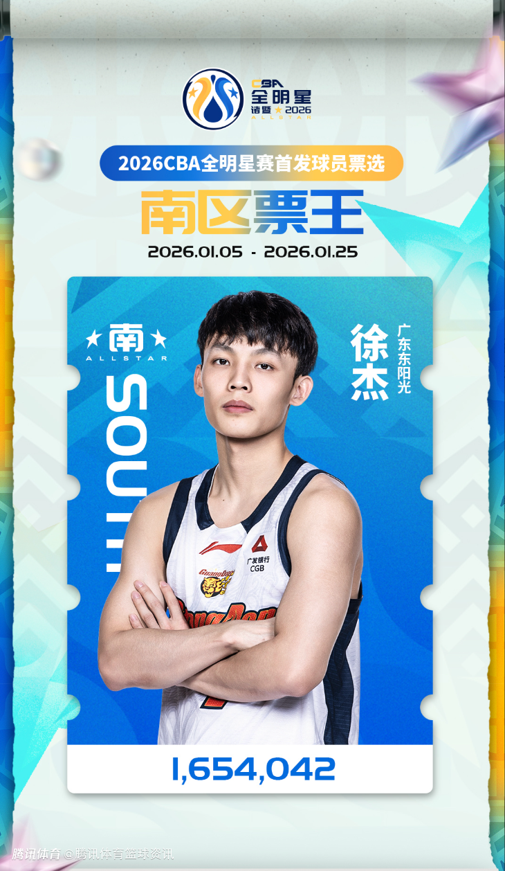 北京时间1月26日,CBA官方公布了全明星首发球员票选结果,徐杰当选南区票王和总票王,北区票王为赵睿。
