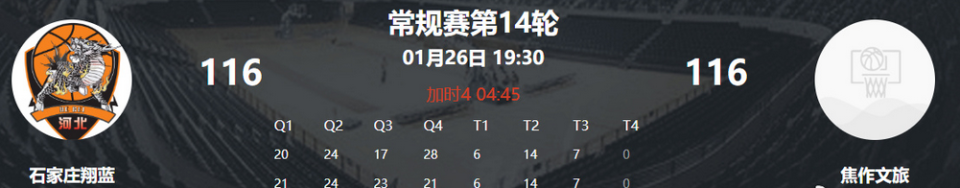从7.30打到快11点。NBL联赛石家庄翔蓝主场4加时苦战险胜焦作文旅。上一次中国联赛4加时是什么时候啊?