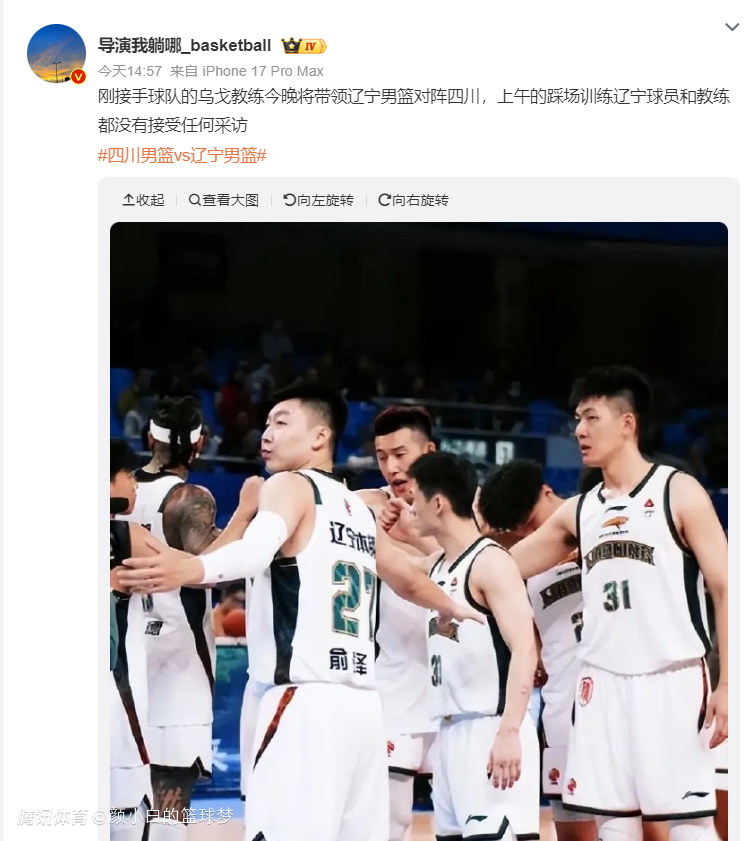 双方大名单出炉,四川队只有庞兹一名外援。这是辽篮在杨导离任后的首个客场比赛。