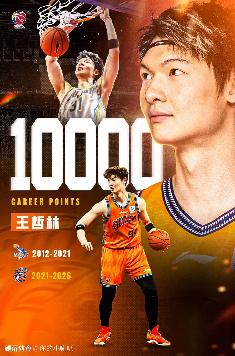 上海久事95-78战胜广州朗肽海本的比赛中,上海久事球员王哲林上场24分38秒,得到25分和10个篮板,CBA生涯总得分达到10000分,目前排在CBA历史总得分榜第6位,他也成为CBA历史上第六位、现役唯一一名“万分先生”。