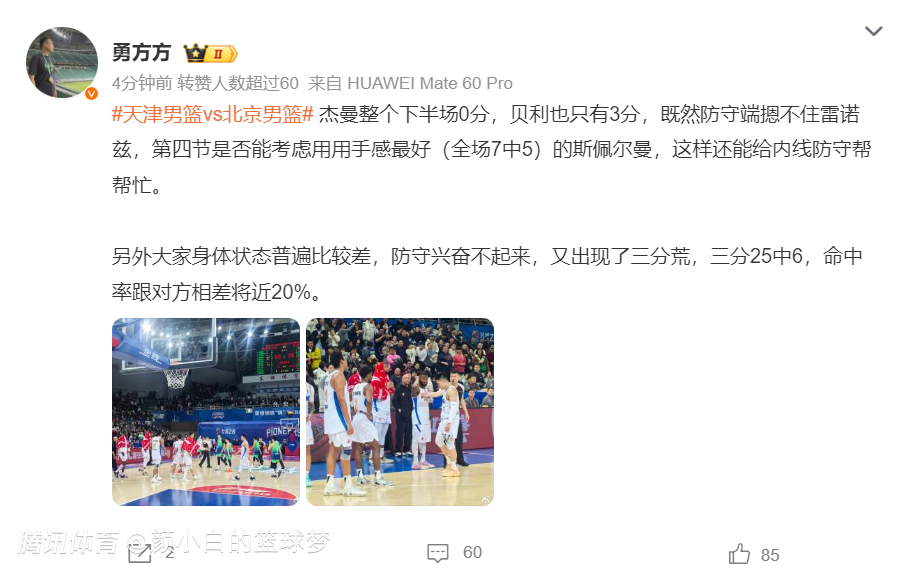 北京记者勇方方:杰曼下半场0分,贝利也只有3分,防守端也摁不住雷诺兹,第四节是不是应该用全场手感最好的斯佩尔曼呢?他在内线还能提供帮助去防雷诺兹。