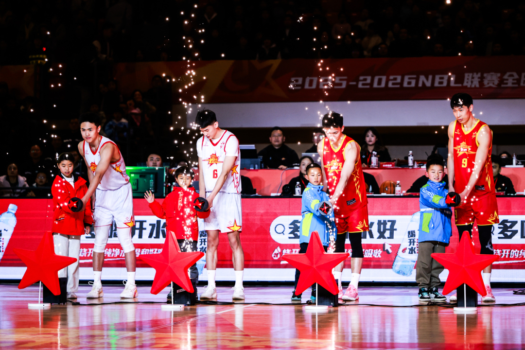 赛前,“星火传承”仪式于场地中央举行。在全场目光聚焦之下,全明星球员代表与遵义沙滩文化小学学生、遵义市社会福利院儿童携手点燃“星火”。从革命精神到体育精神、从一代人到下一代人的使命传承,在这一刻得以具象呈现。此刻,在遵义这片红色圣土之上,红色文化与篮球的拼搏精神深度交融,完成了一场跨越时空的对话。