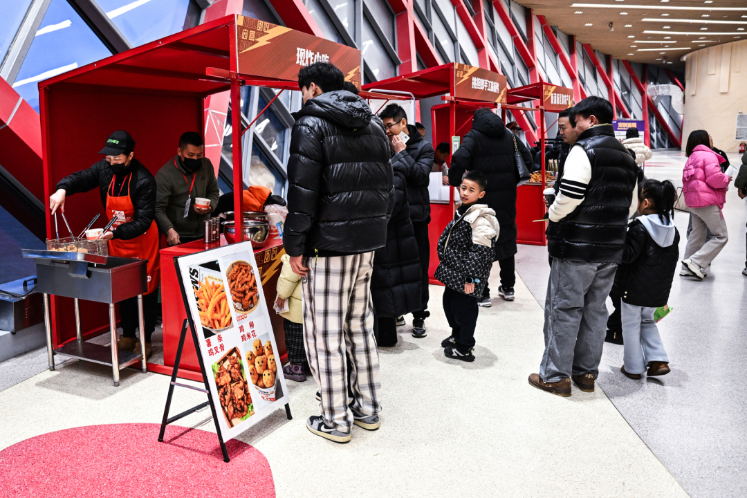 本次赛事不仅是竞技的舞台,更成为链接多元消费场景的关键纽带,全力推动赛事“流量”转化为发展“增量”。观众环廊处,精心打造的赛事集市汇聚了篮球周边、本土特色美食与趣味互动体验,让热烈的赛场氛围延伸至充满烟火气的休闲空间,实现了观赛体验与生活温度的深度融合。