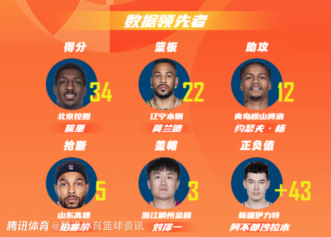 北京控股球员佩里以单场34分的数据领衔得分榜;