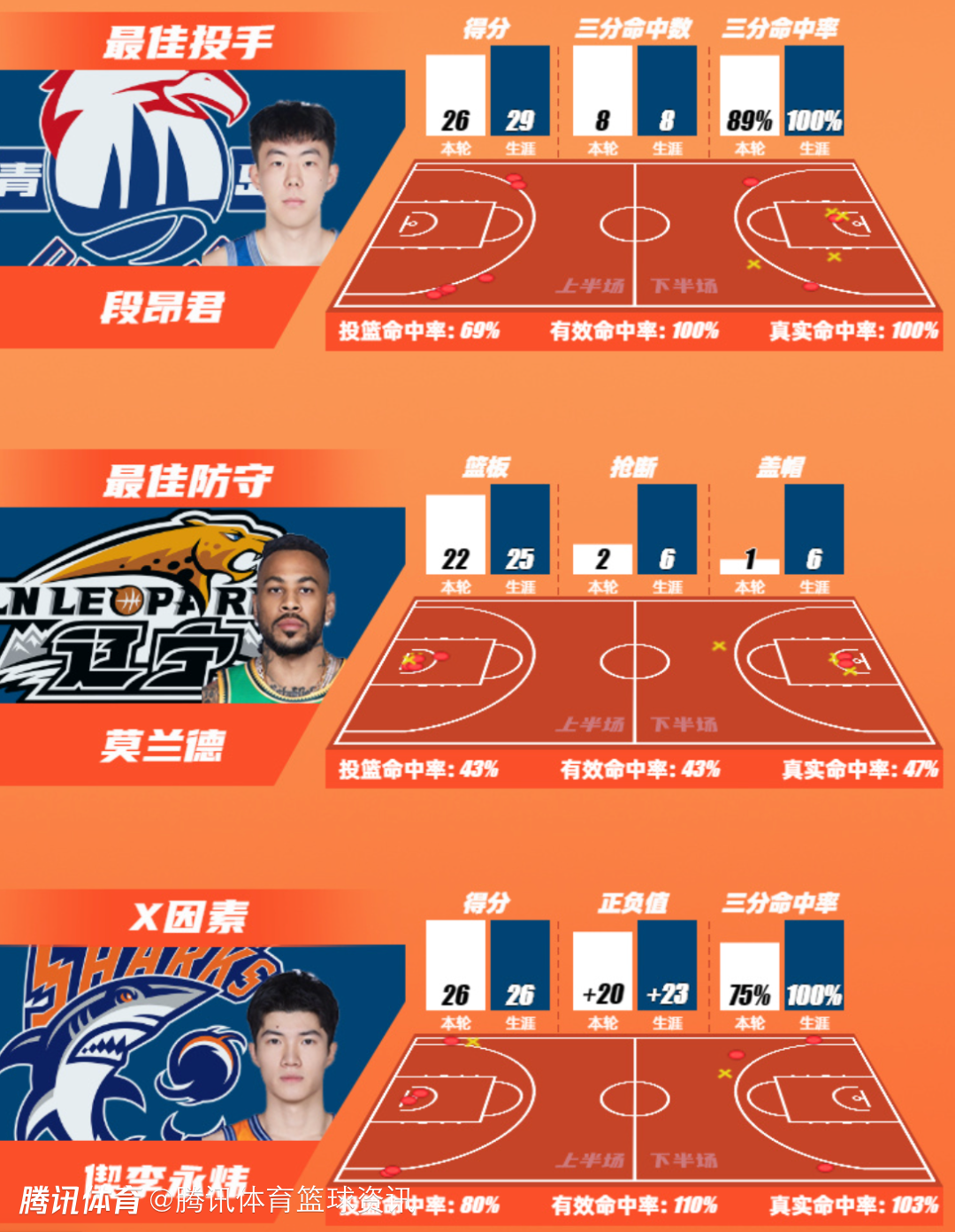 第22轮最佳防守球员由来自辽宁本钢的莫兰德获得;