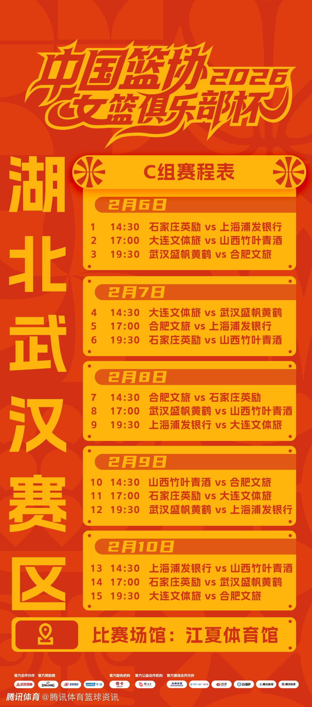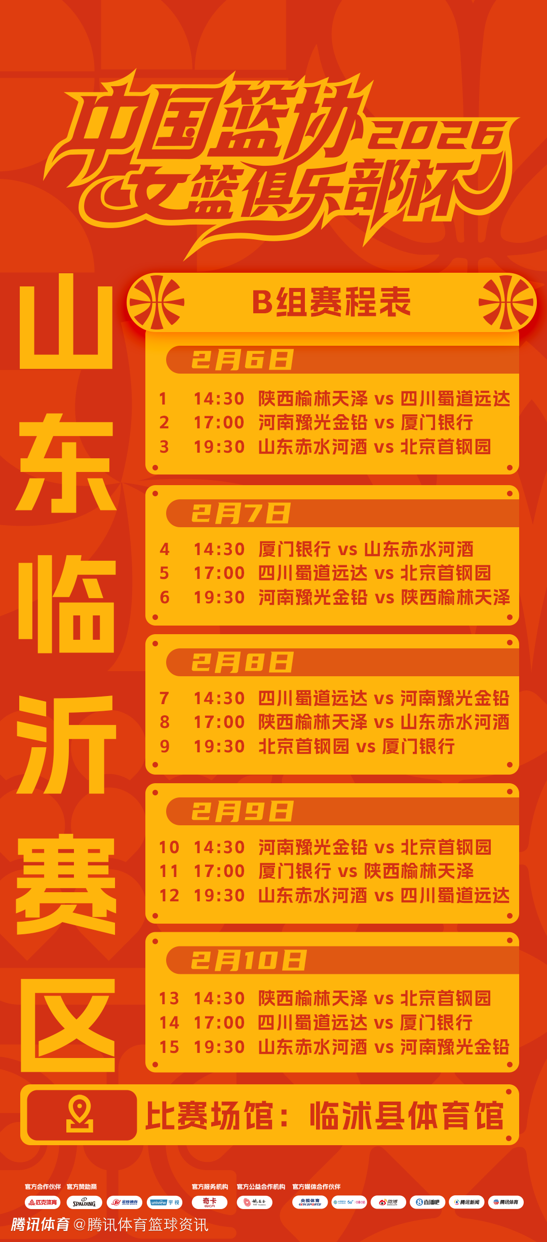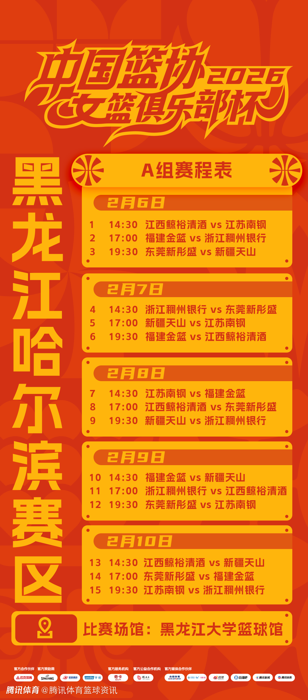 北京时间2月2日,2026年中国篮协女篮俱乐部杯(首届)即将于2月6日举办,预赛将在三个赛区进行(A组为黑龙江哈尔滨赛区、B组为山东临沂赛区、C组为湖北武汉赛区)。