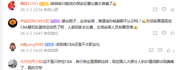 草台班子,业余安保,难道连孙铭徽都不认识吗?孙目前算是现役CBA最知名篮球运动员了吧,人家回家乡比赛,主场安保人员却要添堵。