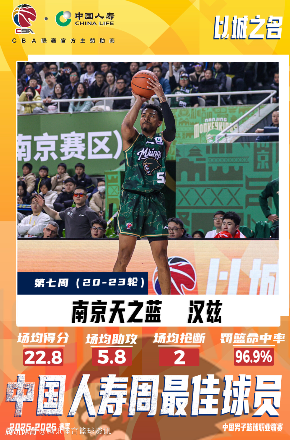 【汉兹当选2025-2026赛季CBA联赛常规赛第七周中国人寿周最佳球员】