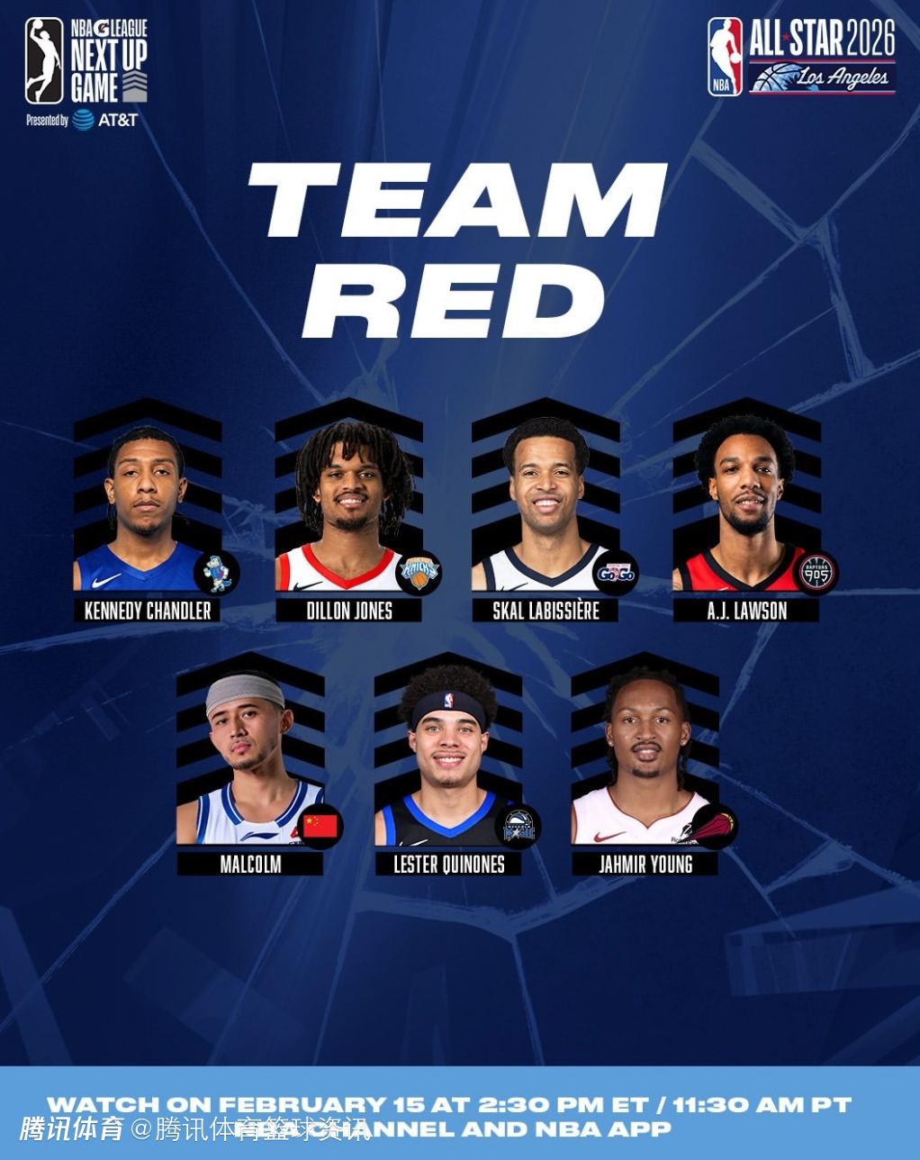 卡米然所在的红队,除了他自己,还有肯尼迪-钱德勒、狄龙-琼斯、拉比西埃、AJ-劳森、贾米尔-杨、基诺内斯。