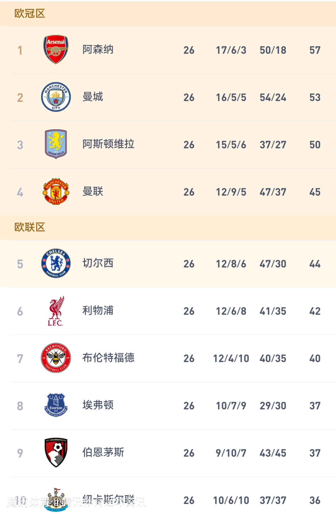 北京时间2月13日,本轮阿森纳1-1布伦特福德,至此英超第26轮的全部比赛均已结束!