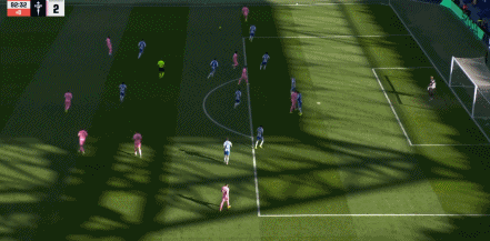 第74分钟,伊格莱西亚斯在3名后卫夹击之下推射,皮球擦柱而出。