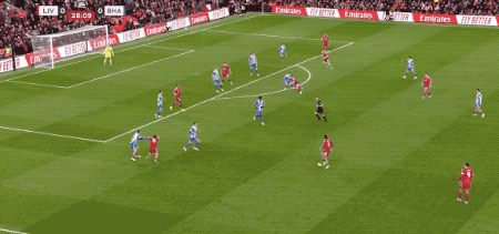 上半场补时阶段,琼斯突然滑倒,戈麦斯打算穿裆破门,阿利松识破计谋。