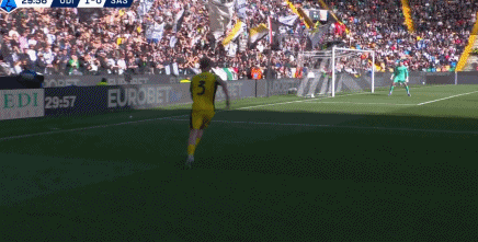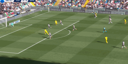 第42分析,乌迪内斯后卫解围踢疵,贝拉尔迪门前捡漏错失良机。