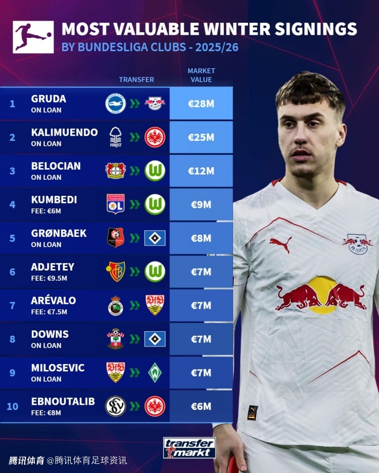 北京时间2月16日,《德国转会市场》盘点了2026年冬窗各大联赛新援的最新身价情况,并分别列出英超、西甲、意甲、德甲以及法甲榜单。