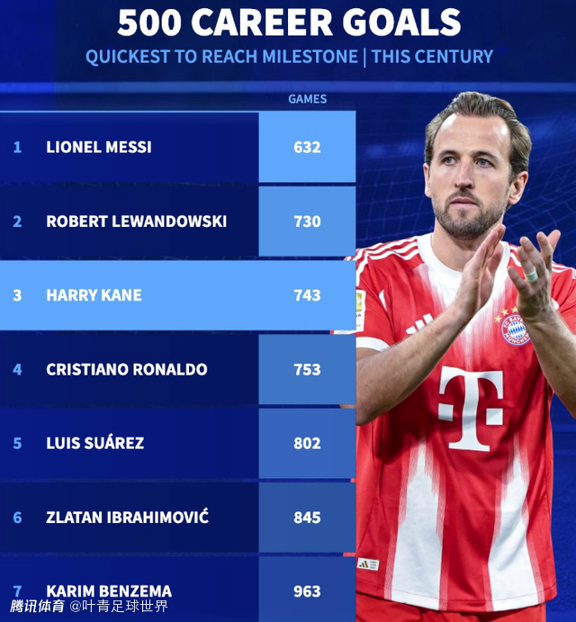 德甲第22轮,拜仁3-0战胜不莱梅,凯恩梅开二度。对凯恩来说,这是具有里程碑意义的双响炮:他的足球生涯已经打进500球。2月17日,德转网站给出统计,21世纪以来,仅有7名球员进球500+,从效率上看,凯恩能排名第4位。