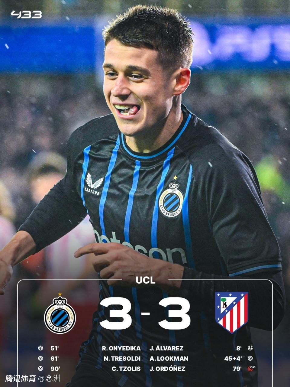 马竞客场3-3战平布鲁日,双方将于2月25日移师利雅得航空大都会球场进行次回合较量。阿尔瓦雷斯点射首开纪录,卢克曼扩大比分,格列兹曼助攻,奥涅迪卡和特雷索尔迪连入两球扳平,马科斯-略伦特造乌龙,佐利斯89分钟绝平。
