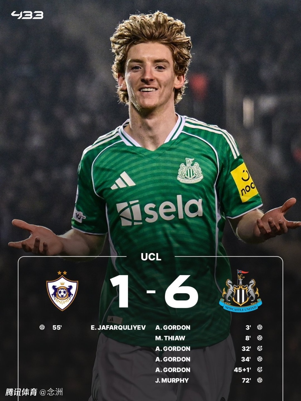 纽卡客场6-1击败卡拉巴赫,次回合将于北京时间2月25日在圣詹姆斯公园球场打响。戈登上演大四喜,特里皮尔助攻佳夫破门,卡拉巴赫扳回一城,雅各布-墨菲替补建功。