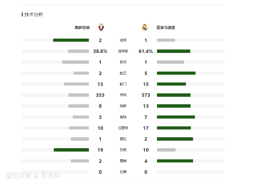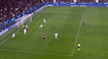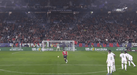 第38分钟,库尔图瓦出击踩到布迪米尔脚面,主裁判罚点球,布迪米尔操刀命中,奥萨苏纳1-0领先。