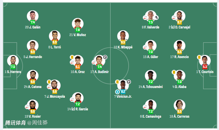 未登场替补:13-卢宁、43-梅斯特雷、20-弗兰·加西亚、22-吕迪格、23-门迪、30-马斯坦托诺、45-蒂亚戈