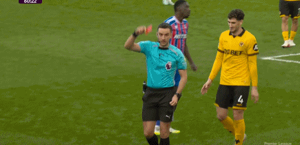 第61分钟,克雷伊奇2黄被罚下,狼队剩下时间10打11。