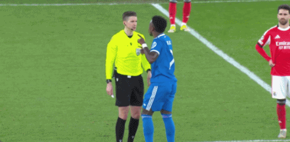 在双方首回合较量中,皇马客场1-0战胜本菲卡。比赛第50分钟,维尼修斯破门得分。随后场上发生争议事件,维尼修斯向裁判投诉遭遇种族歧视言语攻击,主裁随即启动反种族歧视协议,比赛一度暂停。