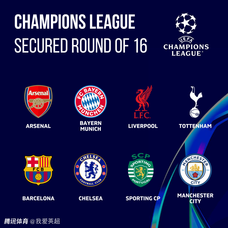 此前,阿森纳、拜仁、利物浦、热刺、巴萨、切尔西、葡萄牙体育、曼城通过联赛阶段锁定积分榜前8名,从而直通16强。