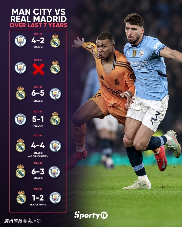 这将是两队连续第5个赛季在欧冠淘汰赛里交锋,自2021-22赛季以来,两队已经连续4个赛季在淘汰赛里交锋。