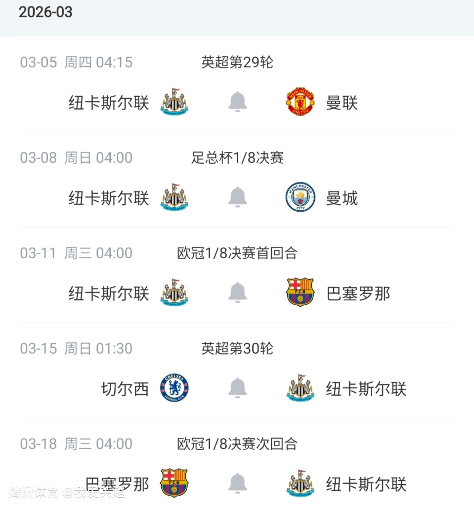 这也意味着,即将到来的3月份,纽卡斯尔将迎来超级魔鬼的赛程。从3月5日到18日这短短的14天时间内,他们需要连踢5场比赛,而且这5场比赛没有一场是轻松的。