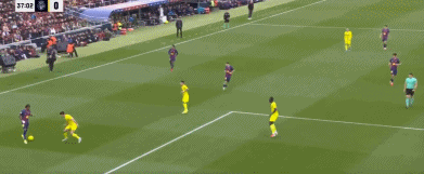 44分钟,奥尔莫右路横敲,孔德推射破门,边裁示意越位在先,进球无效。