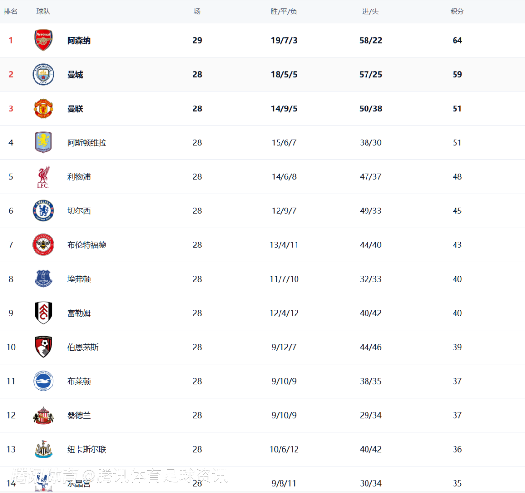 随着赛季进入冲刺阶段,争冠与保级形势逐渐明朗。阿森纳占据主动,而身后的曼城仍保有追赶空间;保级区方面,竞争同样激烈,形势依然充满悬念。