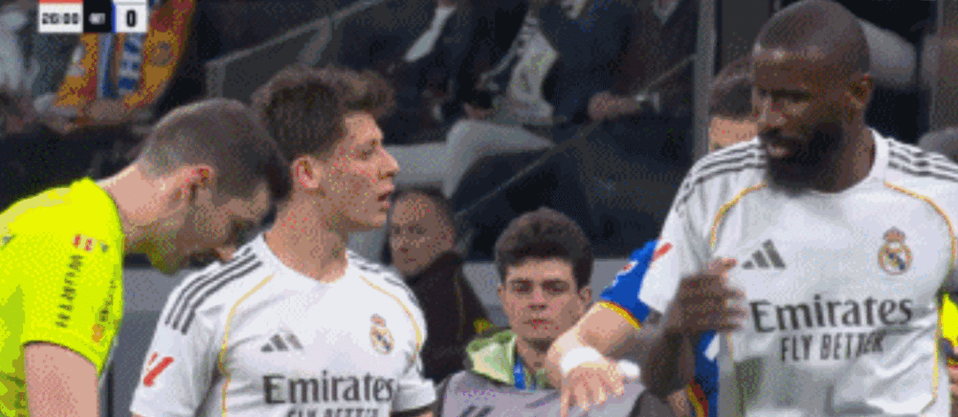 比赛第25分钟,赫塔费球员里科带球突破时倒地,慢镜头显示安东尼奥·吕迪格在对抗中膝盖顶到对方头部,但当值主裁未出示任何牌。