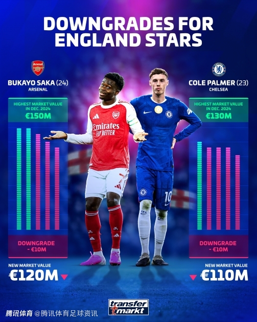 北京时间3月9日,德国转会市场今日更新了部分英格兰足球超级联赛球员身价榜。布卡约·萨卡与科尔·帕尔默的身价均下调1000万欧元,而 多米尼克·索博斯洛伊 则上涨1500万欧,首次迈入1亿欧元俱乐部。此外,亚历山大·伊萨克 的身价下降至1亿欧元。