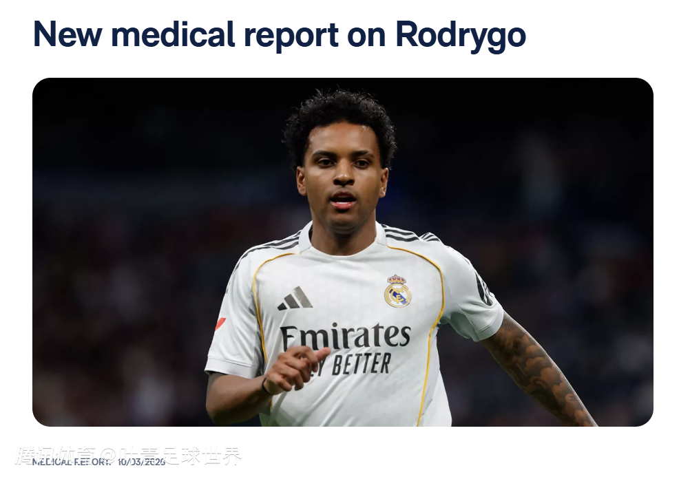 3月10日,皇马官方宣布,罗德里戈的手术成功。《阿斯报》指出,罗德里戈需要休息10个月。想要复出回归赛场,罗德里戈需要战胜身体和心理的双重阴影,这需要1年时间。2026年美加墨世界杯,不会有罗德里戈的身影;今夏的转会市场,也不会有罗德里戈的传闻。