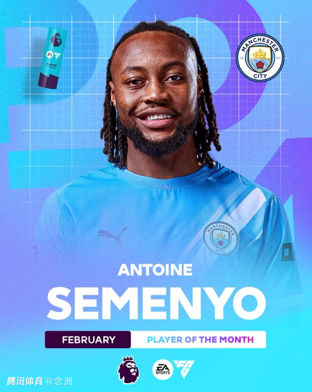 北京时间3月13日,英超官方宣布,曼城边锋塞梅尼奥当选英超联赛2月最佳球员。