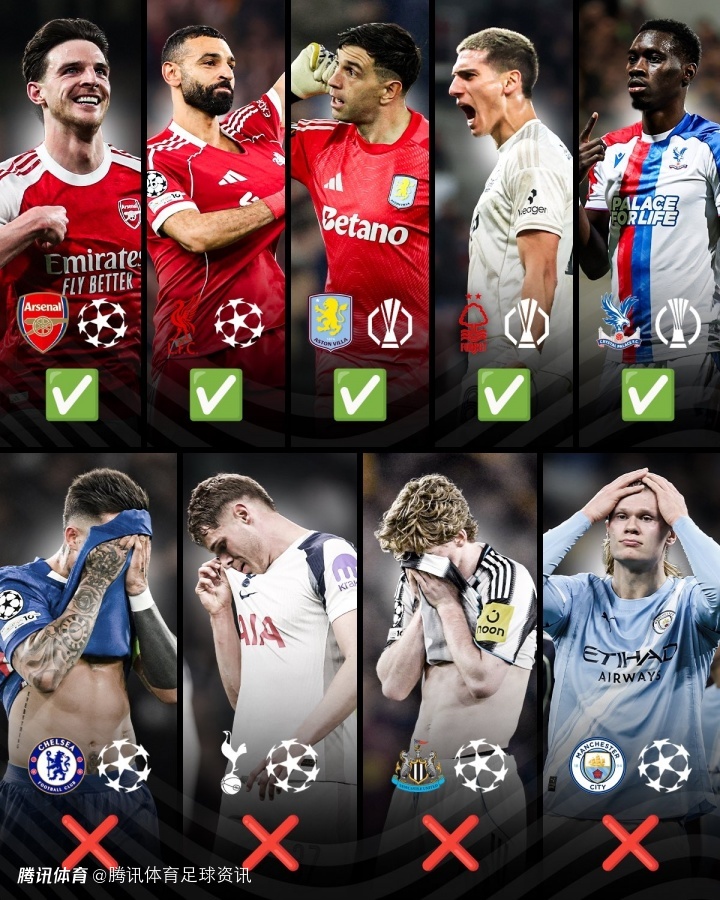 相比之下,出局的球队则全部集中在欧冠战线,包括曼彻斯特城足球俱乐部、切尔西足球俱乐部、托特纳姆热刺足球俱乐部以及纽卡斯尔联足球俱乐部,四支球队均未能更进一步。