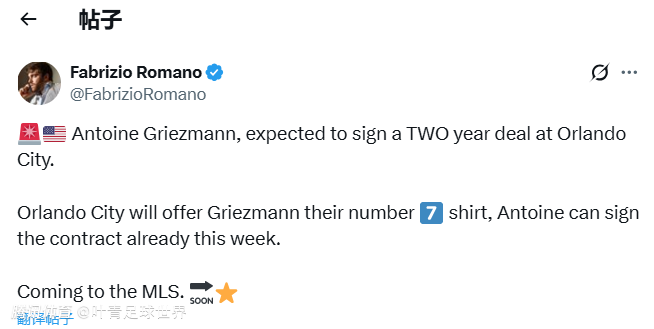 格列兹曼加盟奥兰多城,确认(here we go)!法国球星与奥兰多城达成口头协议,双方签约2年。在奥兰多城,格列兹曼将身穿7号球衣,本周即可正式签署合同,7月份加盟。