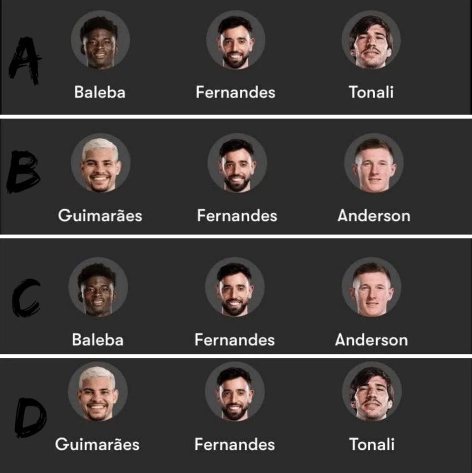 近期曼联买中场引援的主角是纽卡斯尔联的布鲁诺·吉马良斯,俱乐部已经与其经纪人进行了深入谈判。意大利转会专家法布里济奥·罗马诺证实,曼联确实对吉马良斯感兴趣,但说会签下他还为时过早。同样的道理,也适用于桑德罗·托纳利、卡洛斯·巴莱巴或者埃利奥特·安德森等人。