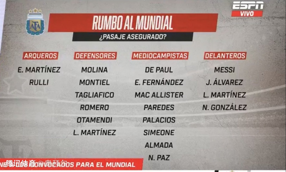 周四,ESPN网站透露,斯卡洛尼已经确定包括梅西在内的20名球员已经锁定世界杯门票,16名球员将争夺最后6张“门票”。