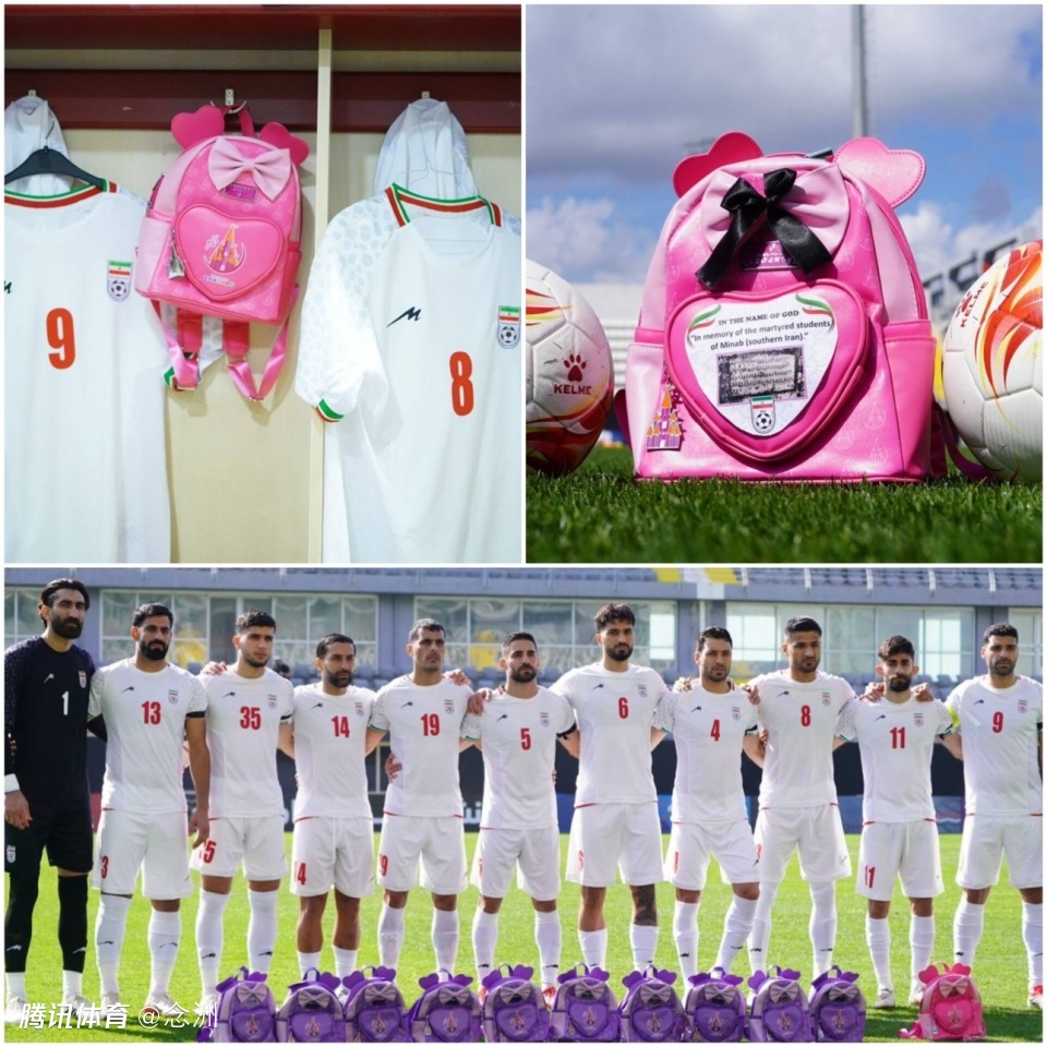 所以,伊朗队首发全员在赛前捧着粉色和紫色的书包,表情庄重肃穆,悼念这些不幸遇难的儿童,其中就包括队长塔雷米。