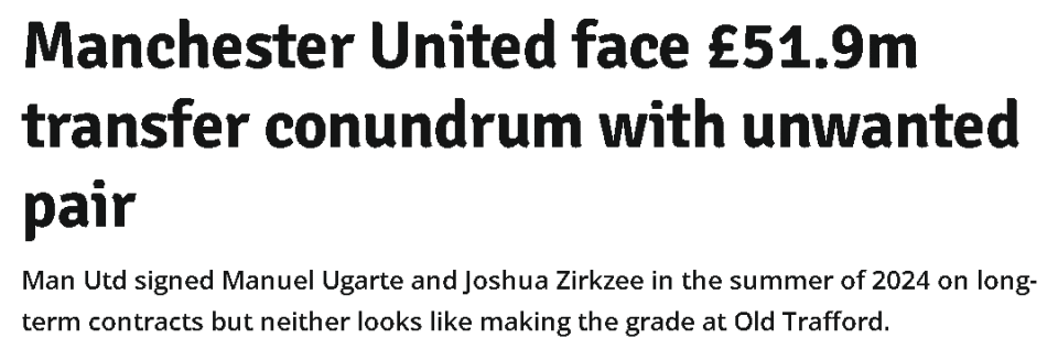任何低于这些费用的销售都将被记为曼联的会计亏损,当然,其中一部分亏损将被潜在的工资节省所抵消。齐尔克泽卖出2190万英镑有希望,但乌加特3000万出售则完全不可能发生。