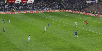 易边再战,人数处于劣势的意大利守到第79分钟还是丢球,波黑队门前混战由姆巴科维奇破门扳平比分。