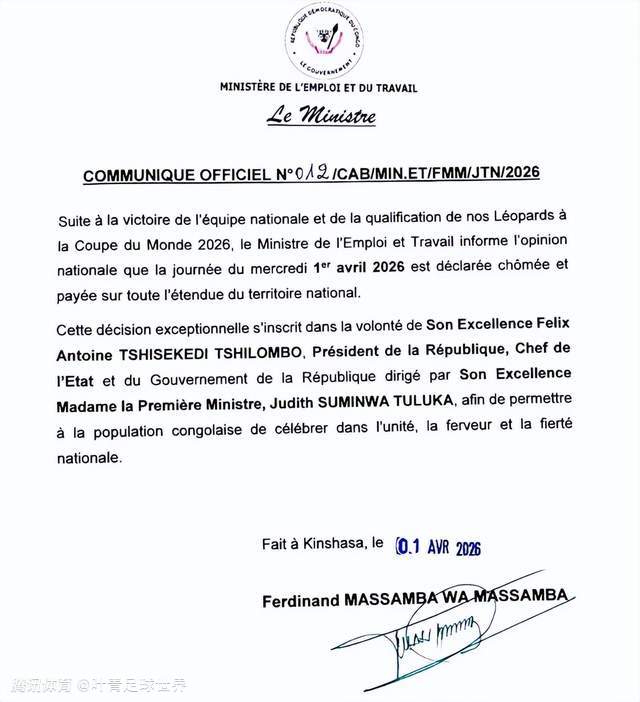如何庆祝晋级世界杯?4月1日,民主刚果劳动与就业部发布公告: