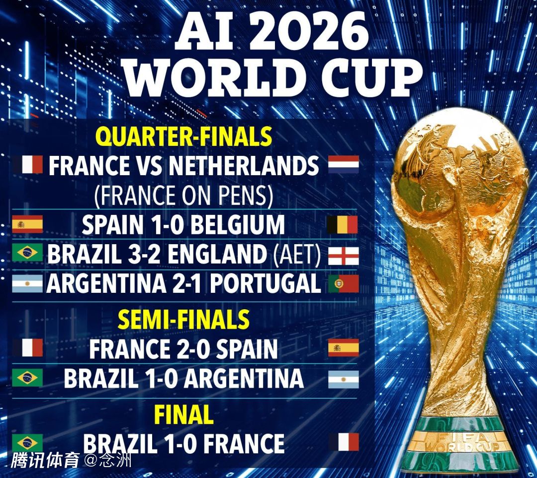 北京时间4月2日,据英媒《太阳报》报道,AI对2026年世界杯的结果进行了预测,结果显示,巴西将赢得世界杯冠军!