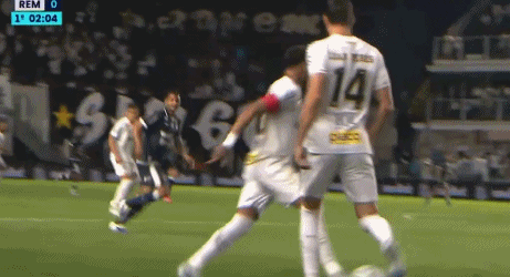 桑托斯的4411阵型,内马尔出任前腰,扮演进攻指挥官的角色。第40分钟,桑托斯打破僵局,内马尔送上助攻: