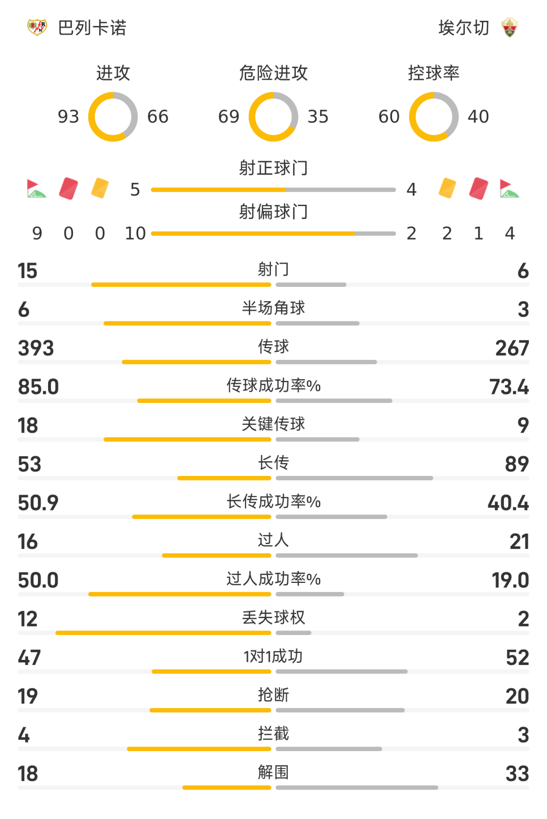 25/26赛季西甲联赛第30轮。上半场比加斯危险动作两黄变一红被罚下场,下半场恩特卡破门制胜,最终巴列卡诺1-0战胜埃尔切。