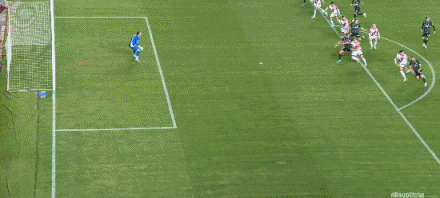 19’拉法-米尔禁区外起脚打门,门将把球没收