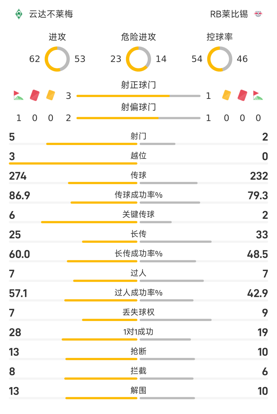 25/26赛季德甲联赛第28轮,云达不莱梅迎战RB莱比锡。半场战罢,双方比分暂为云达不莱梅0-1RB莱比锡,努萨破门建功。